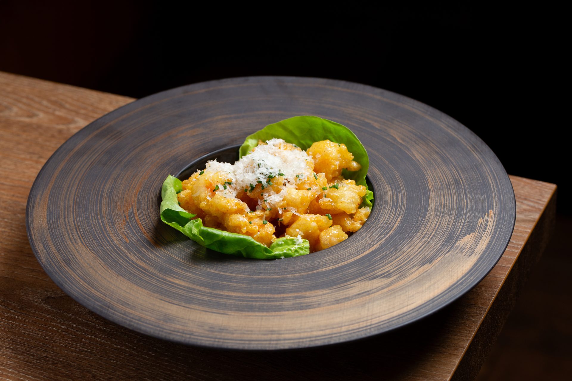 setas de temporada salteadas al wok, yema de huevo de pollita y caldo de pollo agripicante.
